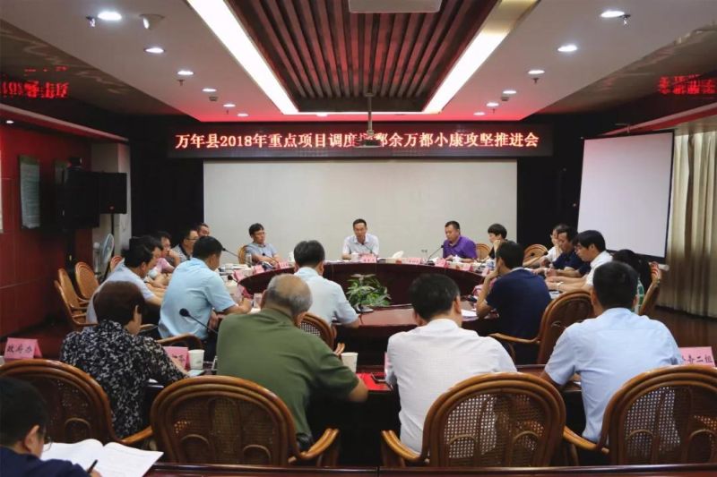 7月6日,万年县2018年重点项目调度暨鄱余万都小康攻坚推进会在县经济服务中心七楼会议室召开。县委书记潘表光出席会议并讲话,县委副书记、县长吴树俭主持会议。县委副书记刘德年,县委常委江俊、王爱国、江德明、刘晓华、姚晗、邓荣军出席会议或参加现场办公。